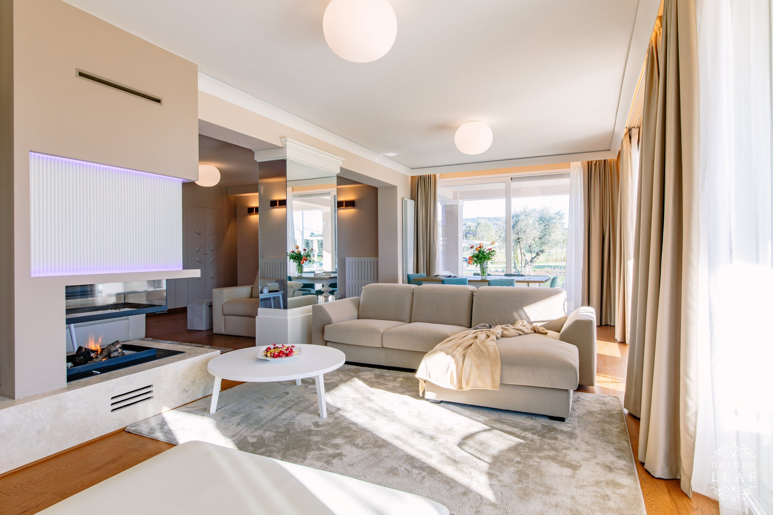 Over 500 square meters of comfort, elegance, and sophisticated simplicity. It emanates light and enjoys large spaces both indoors and outdoors. Recently built, equipped with home automation systems, and with precious attention to the environment. Colors that blend together, shades from gray to white to enhance the spaciousness of the rooms, large windows that let in the sun that illuminates La Perla from its sunrise until sunset. The glass balustrades ensure that the grandeur of the landscape can be captured from every angle, so as not to lose any glimpse, no detail, no ray of sunshine.